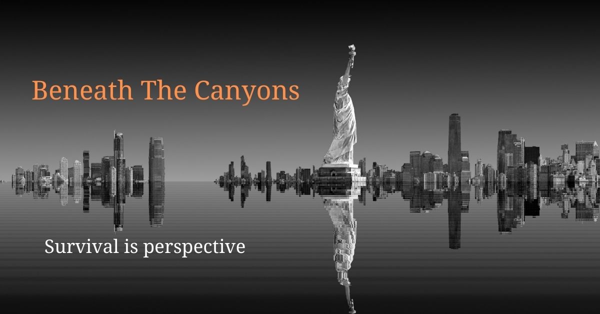 Macy’s passed by, the half of the store above the waterline now populated with just two salespeople and only a handful of underweight, dowdy customers, courtesy of a tourist barge moored at the ramshackle jetty. Doors had been fitted mid building and just the name Macy’s and its legacy seemed to make it a worthwhile destination for some, who often had to risk life and limb to reach the iconic retail building. The place was more a museum with only a few shop-branded items in the gift shop, and an understocked sushi café for a bite to eat. It was a feat of adaption that many of the buildings could remain in their original context of shops and hotels and banks. The Canyons, as many called the city for short, was a remanent, a ghost of its former self, before the ocean rose and the climate changed so dramatically.